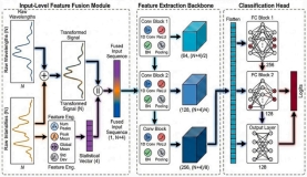 针对上述问题,团队创新性地构建了钾辅助正交双脉冲 LIBS 与特征融合卷积神经网络(CNN)协同框架:运用高纯度 KHCO₃固体靶实现等离子体交叉耦合与二次能量注入,将痕量元素检测灵敏度提升至 ppb 级别;设计特征融合 CNN 模型,将归一化光谱数据与统计描述符进行串联,自主提取层级化空间 - 光谱特征,突破了手动特征工程的局限。